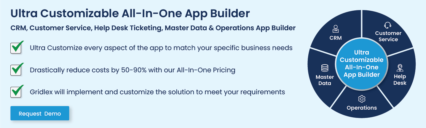The Gridlex App Builder enhances the capabilities of their software suite by offering features like Custom Models, Apps, Forms, Fields, UX, Permissions, Page Layouts, Page Views, Reports, Integration, and more. This flexibility ensures Gridlex can adapt to the evolving needs of your business, supporting seamless integration with existing systems, scalability, and robust data management. With comprehensive support and a focus on user-friendliness, Gridlex ensures businesses can maximize the potential of their CRM and related applications.