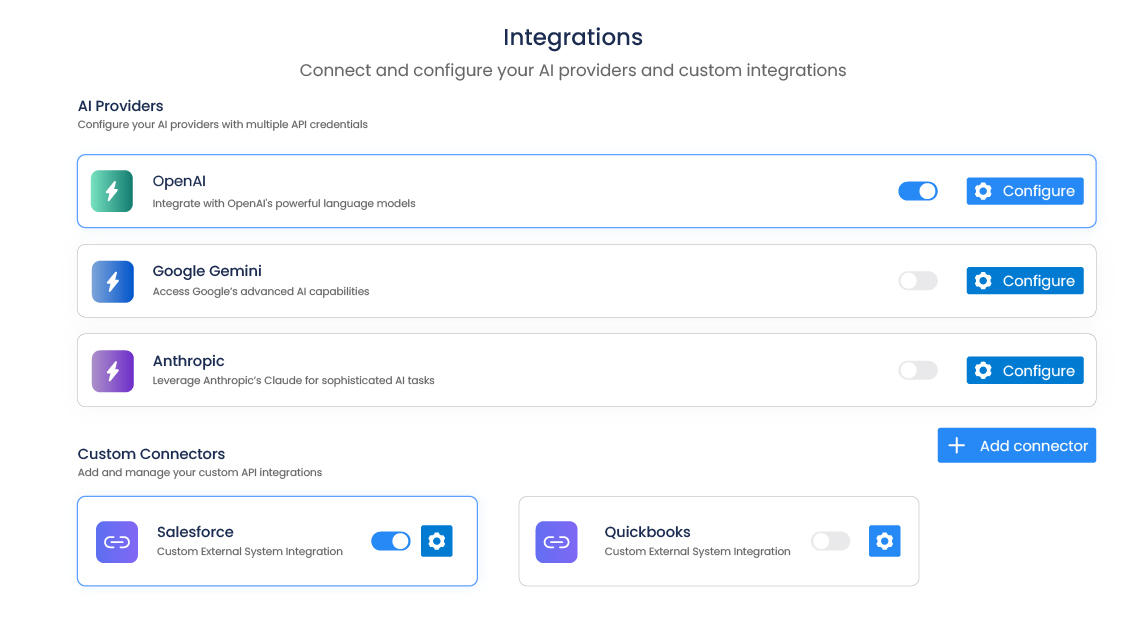 - AI provider integrations included